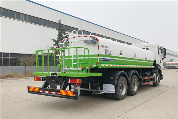 整車具有路面灑水、路面沖洗、噴霧降塵、澆花等多種功能。躍迪環衛灑水車罐體后帶工作平臺,平臺上安裝綠化灑水炮,灑水炮可全方位旋轉,可連續調成直沖狀、大雨、小雨、毛毛雨,帶安全護欄。