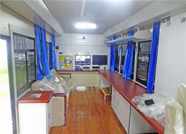 躍迪移動城管車集成了巡邏、出警、辦公、咨詢于一體,可使執(zhí)法人員24小時處于一線警備狀態(tài),配備警示宣傳系統(tǒng)、警務(wù)辦公系統(tǒng)、警務(wù)通信系統(tǒng)、監(jiān)控系統(tǒng)、圖傳系統(tǒng)、供電系統(tǒng)、照明系統(tǒng)及簡易生活設(shè)備,具有現(xiàn)場辦公指揮、應(yīng)急通信、圖像4G傳輸、現(xiàn)場照明、強聲廣播、惡劣環(huán)境執(zhí)勤等功能,能滿足移動辦公、警務(wù)前移、檢查、卡口、維護治安等需要。