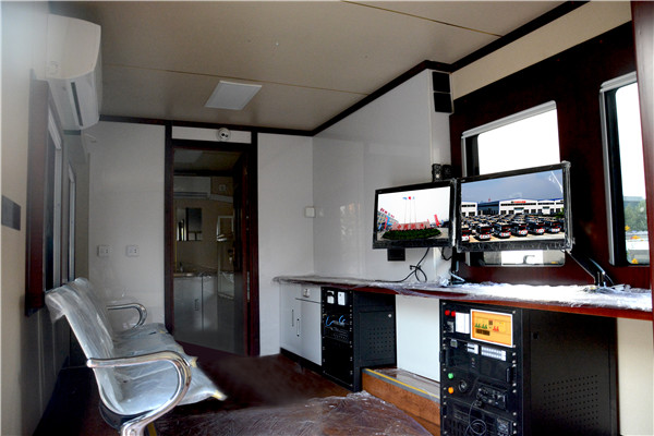 躍迪牽引式移動(dòng)警務(wù)室是根據(jù)公安、特警系統(tǒng)特點(diǎn)和移動(dòng)辦公指揮的需求,開(kāi)發(fā)設(shè)計(jì)的能滿(mǎn)足一定人員工作并實(shí)現(xiàn)遠(yuǎn)程監(jiān)控、指揮調(diào)度功能的新型警務(wù)設(shè)備。配備警務(wù)辦公系統(tǒng)、警務(wù)通信系統(tǒng)、監(jiān)控系統(tǒng)、圖傳系統(tǒng)、供電系統(tǒng)、照明系統(tǒng)及簡(jiǎn)易生活設(shè)備,具有現(xiàn)場(chǎng)辦公指揮、應(yīng)急通信、圖像4G傳輸、強(qiáng)聲廣播、惡劣環(huán)境執(zhí)勤等功能,能滿(mǎn)足移動(dòng)辦公、警務(wù)前移等需要。適用于大型會(huì)議、活動(dòng)等現(xiàn)場(chǎng)警務(wù)辦公,可實(shí)現(xiàn)了對(duì)治安復(fù)雜場(chǎng)所、案件高發(fā)區(qū)域、大型活動(dòng)現(xiàn)場(chǎng)、旅游景點(diǎn)等及治安盲區(qū)的動(dòng)態(tài)管控。